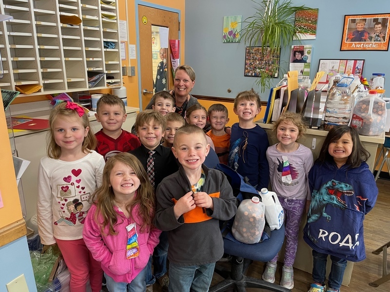 The winning classroom this year, which will receive a pizza and ice cream party, is Mrs. Condon’s kindergarten class. They brought in 167 pounds of pennies! Mrs. Condon also asked her class what the hospital might need, the responses varied and included thermometers, blood pressure cuffs, blankets, pillows, beds, and wheelchairs.