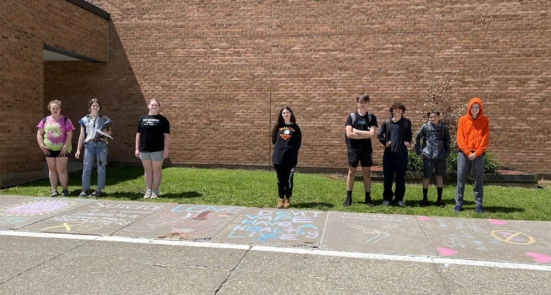 In June, middle school health classes created many health advocacy messages on the sidewalk in front of the school.