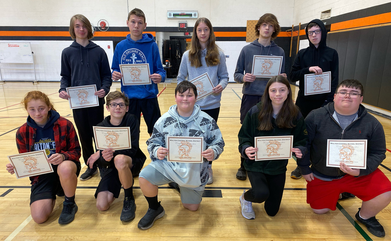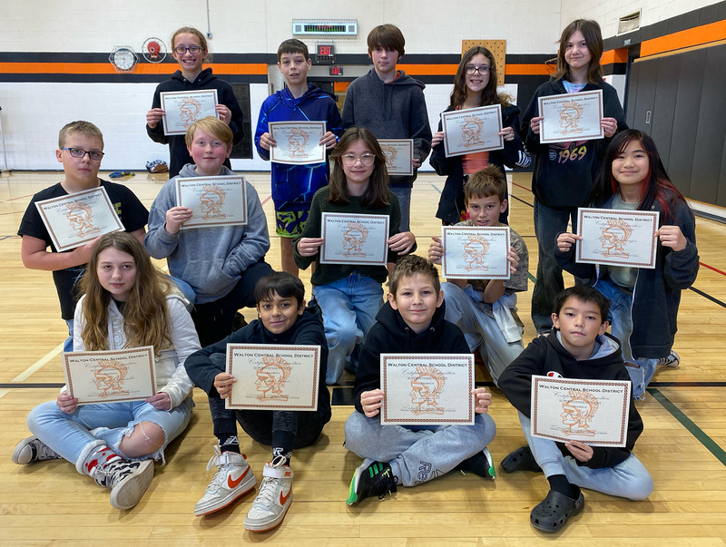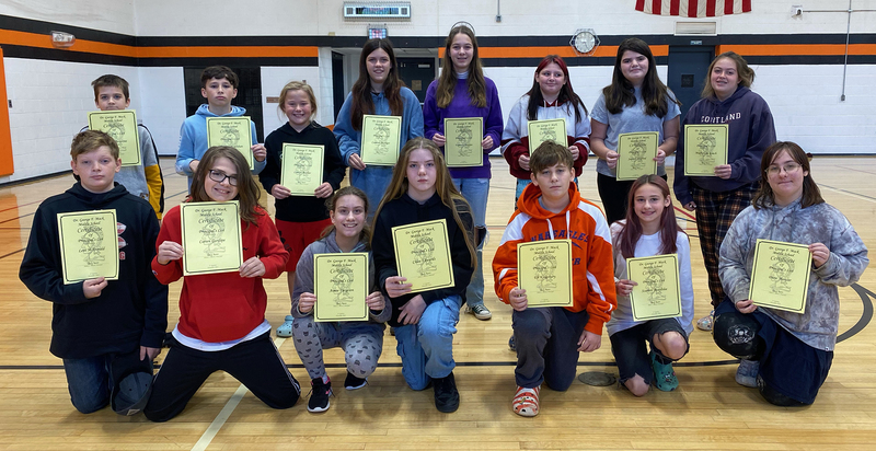 Seventh-grade Superintendent's List: Front (from left): Adam Rice, Esther Salvia, Lila Trimbell, Kennedy Williams, and Annalia Yetto. Middle (from left): Brynlee Hunt, Liam Kane, Emma Kingsbury, Paige LeBarge, and Ava Merwin. Back (from left): Ryan Alessi, Jacob Constable, Lilliana Eisele, Mayla Evans, and Anika Fassler. Missing: Reaghan VanTyle.