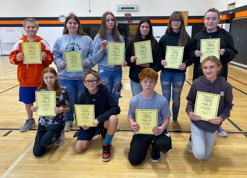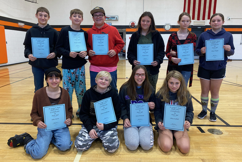 Eighth-grade Superintendent's List: Front (from left): Grace-Mary Walley, Kai Storrer, Lucas Carr, Maisy Rhinehart, and Anderson McEntee. Back (from left): Marcos Marano, Ethan Hall, Alivia Conklin, Parker Cash, and Johnny Ball. Missing: Aidan Bush, Jaedyn Roloson, and Ryder Stone.