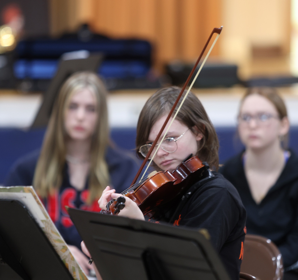 To prepare for the recent spring concert, Townsend Elementary students in the different musical groups performed for their peers. An excellent performance!