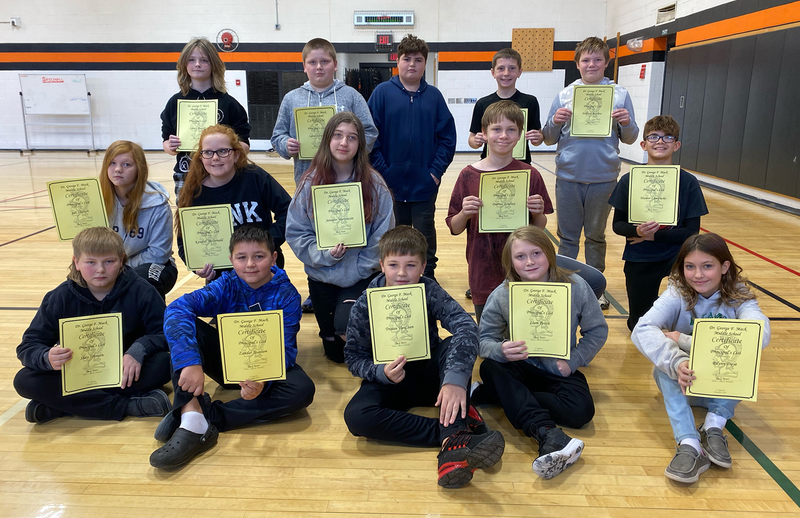 Seventh-grade Principal's List: Front (from left): Levi McDonald, Carsen Gardepe, Aimee Furgeson, Chloe Edwards, Eli Kingsbury, Scarlett Beardslee, and Dixie Manzer. Back (from left): Preston Petrocine, Christian Hanrahan, Linkin Backus, Camiren Barriger, Vanessa Burgos, Tessa Church, Jazmin Clifford, and Mackenzie Roach. Missing: Kamren Craig, Zayden Haskins, Dallas Hulse, Kohl Muller, Corbin Walley, and Xager Wickham.