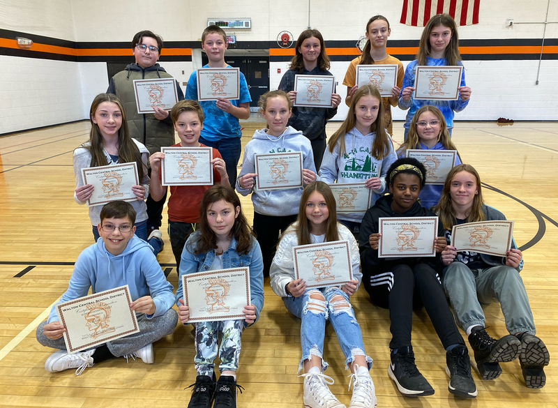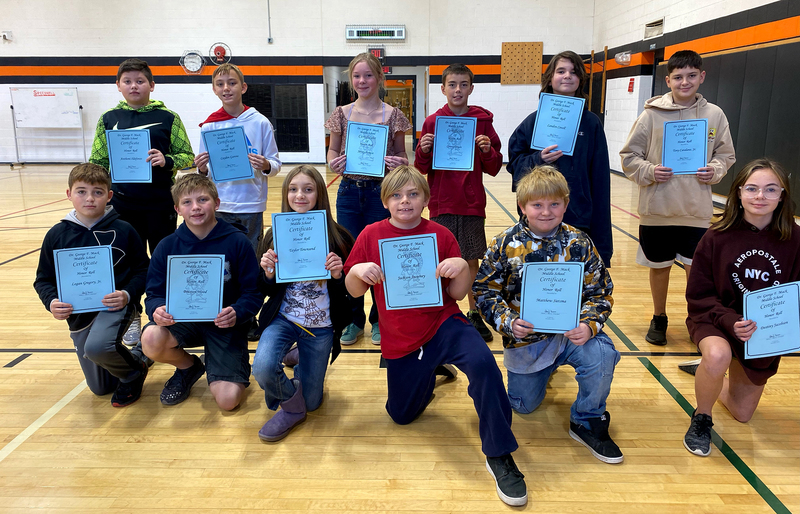 Seventh-grade Superintendent's List: Front (from left): Adam Rice, Esther Salvia, Lila Trimbell, Kennedy Williams, and Annalia Yetto. Middle (from left): Brynlee Hunt, Liam Kane, Emma Kingsbury, Paige LeBarge, and Ava Merwin. Back (from left): Ryan Alessi, Jacob Constable, Lilliana Eisele, Mayla Evans, and Anika Fassler. Missing: Reaghan VanTyle.